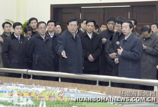 2月6日至9日,张德江先后到石家庄市和我市,考察了钢铁、纺织、机械、高新技术、港口、制药等企业。在唐期间,张德江一行深入我市京唐钢铁联合有限公司、唐山港25万吨级矿石码头、唐钢一钢轧连铸连轧生产线、唐山轨道客车有限公司、太阳石(唐山)药业有限公司和正在建设的南湖生态城,详细了解生产经营和项目建设情况,并参观了曹妃甸规划展示中心和城市规划展览馆。在曹妃甸规划展示中心,张德江指出,曹妃甸拥有区位、港口、资源等得天独厚的发展优势,是唐山乃至河北的希望所在,是中国未来经济发展的一大亮点。他强调,唐山要牢牢把握当前国家保增长、扩内需的有利时机,以时不我待的精神把曹妃甸建设好。在保证质量的前提下,全面加速开发建设进程,能发展多快就发展多快,能够做多大就做多大。要在大力发展临港产业的基础上,加速人口聚集,加快城市发展,以工业化带动城市化。同时,要特别考虑人的因素,根据临港经济发展需要大力兴办职业技术教育,将大批青年农民培训成为技术工人,增加农民收入,推进农村劳动力转移,最终实现农村现代化。