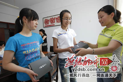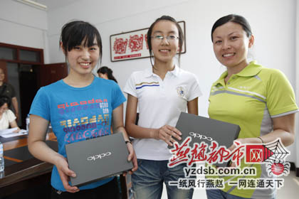 “oppo手机非常愿意为高考考生做点事情,得知两位状元脱颖而出,我们非常欣喜,送上一部最适合学生使用的oppoA90时尚潮人手机,希望能为状元的学习生活带来便利。”6月23日下午,oppo手机人力资源部负责人专程驱车赶到乐亭一中,将两部手机送到文理状元手中。
