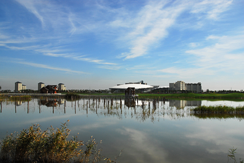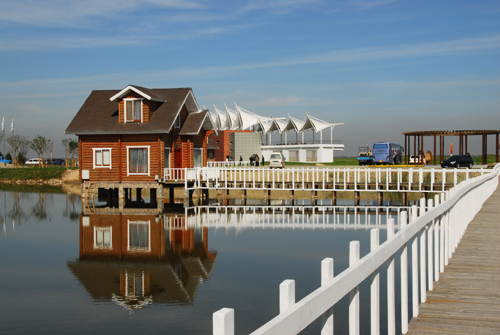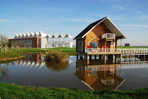 曹妃甸(唐海)湿地公园是在原有一个小型旅游接待设施基础上的异地改造项目,总投资4911万元,总建筑面积4910平方米,是与湿地风格相融合的木屋式小建筑群落。共分为水上运动项目区、观鸟脚踏船游览区、接待中心区、木屋别墅区等四个功能区。