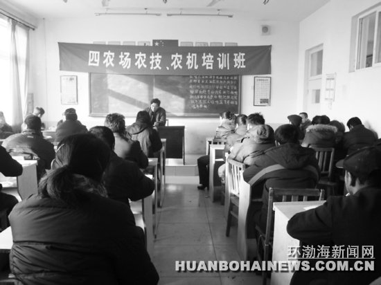 秋收过后,唐海县四农场积极联系组织科技工作者,抓住农闲有利时节,开展新型农民创业培训、农村劳动力转移培训、农民远程教育培训,全面提升农民科技文化素质。截至目前,已转移劳动力2031人,人均年劳务收入2.4万元。图为唐海县四农场农民正在接受科技培训。