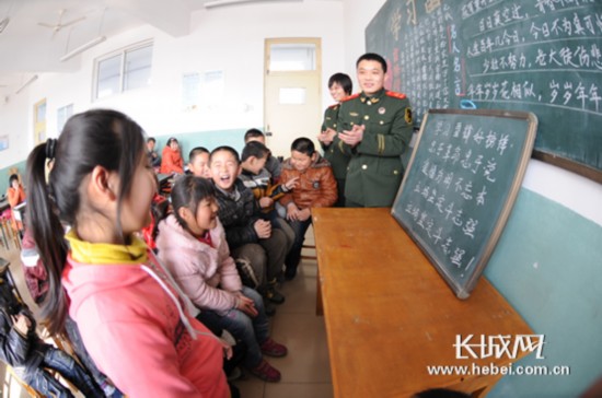 “官兵们教的开心,孩子们学的高兴,看来唱歌比书本、课堂教育更容易让孩子们接受啊。”唐海五场小学孙校长感慨之余透着喜悦。