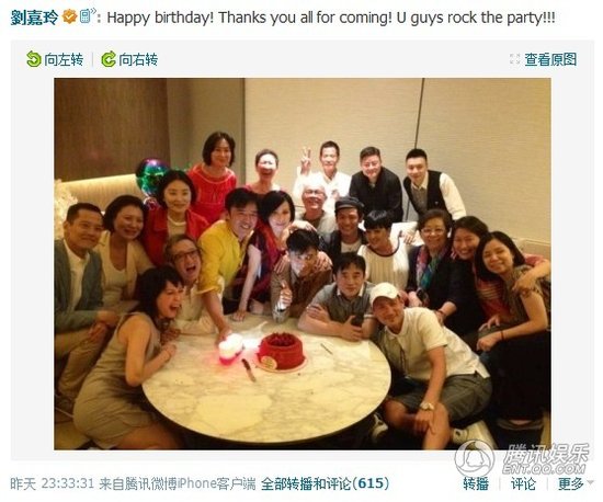 腾讯娱乐讯6月27日是梁朝伟50岁生日,刘嘉玲特意举办party为老公庆生,一众好友林青霞、张学友、钟镇涛、杜德伟、叶童夫妇等纷纷到场庆祝。刘嘉玲在腾讯微博直播了派对现场,并写道“Happy birthday! Thanks you all for coming! U guys rock the party!!!”。