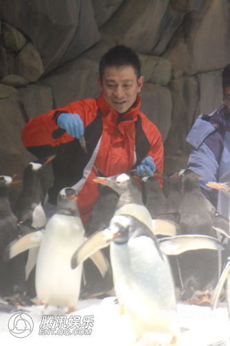 大会更请刘德华进入冰极世界,亲身喂饲企鹅。记者问到刘德华有杂志拍到女儿的出生证明,刘德华表示已向有关政府部门查问,其它的问题不想再回应。