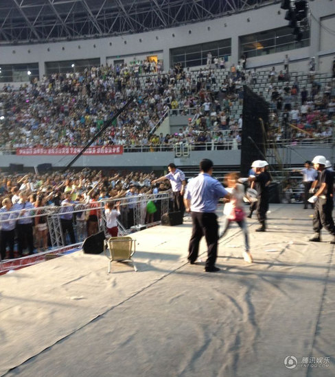 腾讯娱乐讯9月5日晚,在洛阳新区体育馆举办的张信哲、梁静茹“爱茹潮水”洛阳演唱会仅演出半场便遭打砸事故中断。