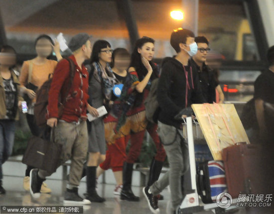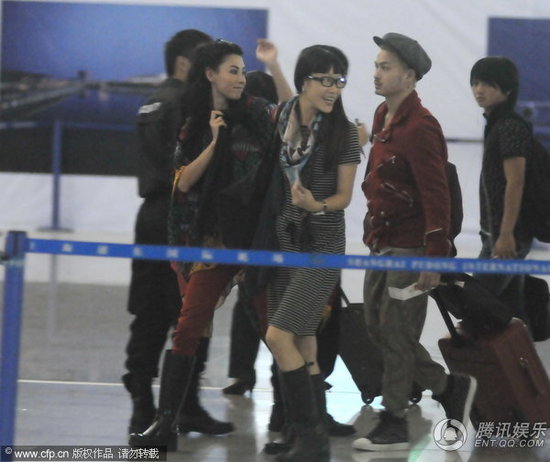 张柏芝深夜现身浦东机场
