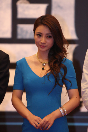 柳岩穿蓝色短裙宣传新片 俯身大秀事业线