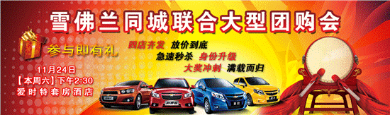 凡到场即有礼品相赠,11月24日(本周六)下午2:30,爱时特套房酒店9楼多功能厅,唐山4家雪佛兰经销商恭候您的光临!