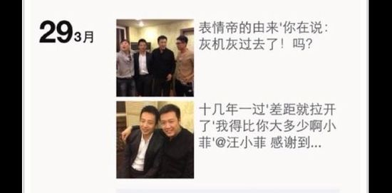 汪小菲在微博秀出与朋友聚会的照片