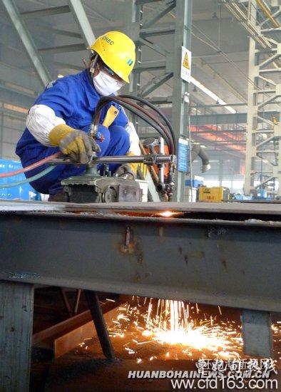 图为曹妃甸工业区装备制造园区建成投产的华电重工制造车间一片繁忙景象。 记者赵勇摄
