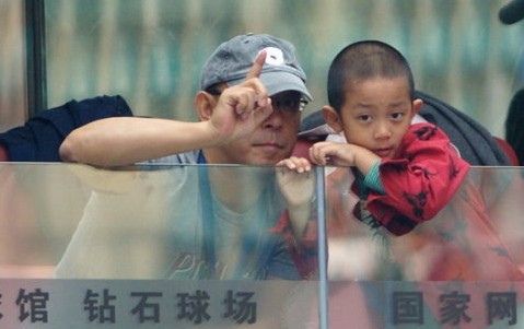 2011年10月5日,北京,2011中国网球公开赛男单第3轮,姜文携妻子周韵及爱子现场观战。