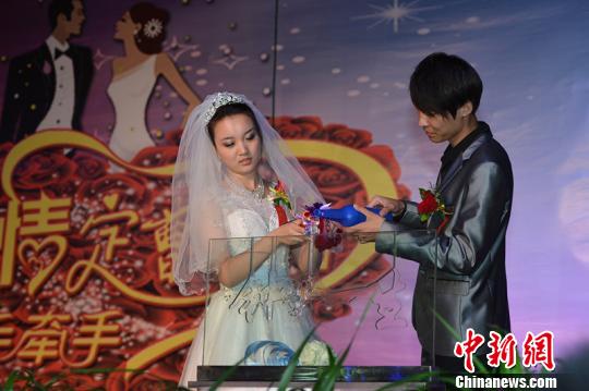 相亲大会上,模特展示结婚礼服。 曹妃甸工业区管委会供图