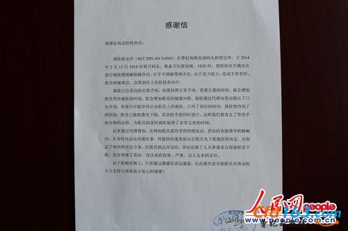 经过共同努力,受伤船员被及时送至医院。由于处理及时,船员伤势已无大碍。事后,该货轮船长向该站发来感谢信,感谢该站高效、严谨、以人为本的服务,为伤员赢得了宝贵的救助时间。(李梦娇 陈龙)