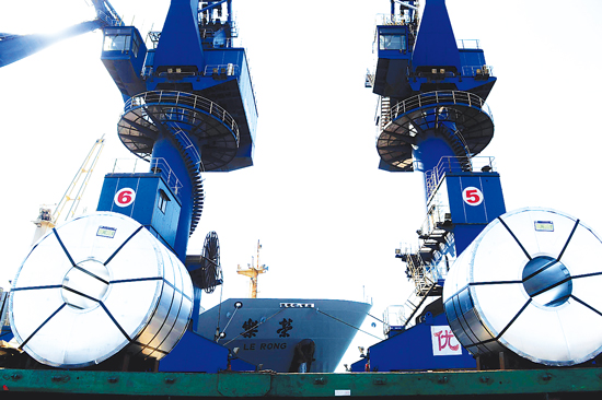 图为在曹妃甸通用码头,货物准备装船。本报记者杜庆君吕光宇摄