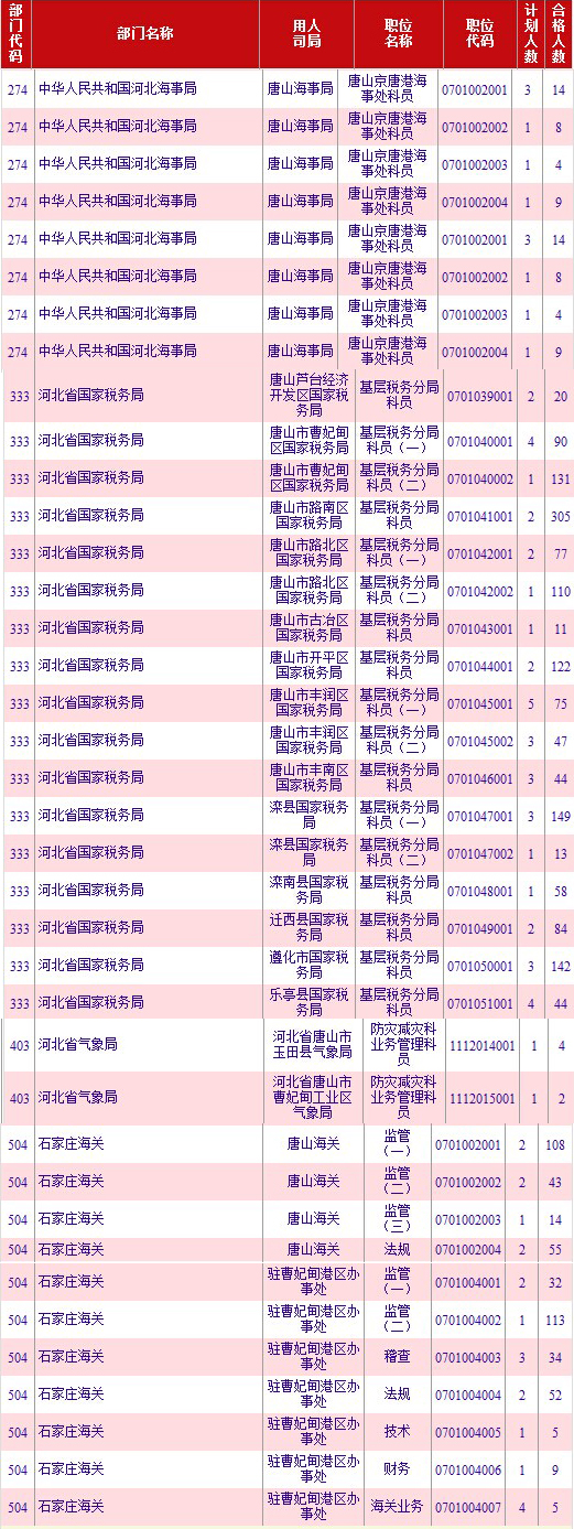 唐山地区各职位报名审核通过人数(截至10月21日16时):