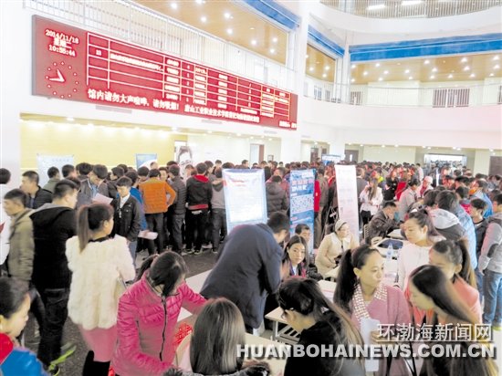 11月18日上午,曹妃甸工业区及市区80多家企业走进唐山工业职业技术学院曹妃甸新校园招聘高技能人才。学院2900多名2015届毕业生参加了近2000个工作岗位的招聘活动。