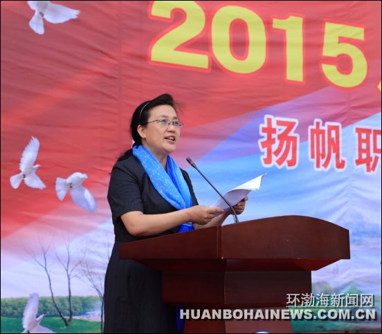 唐山工业职业技术学院院长田秀萍作题为《致青春,让梦想扬帆远航》的讲话 刘柬林摄