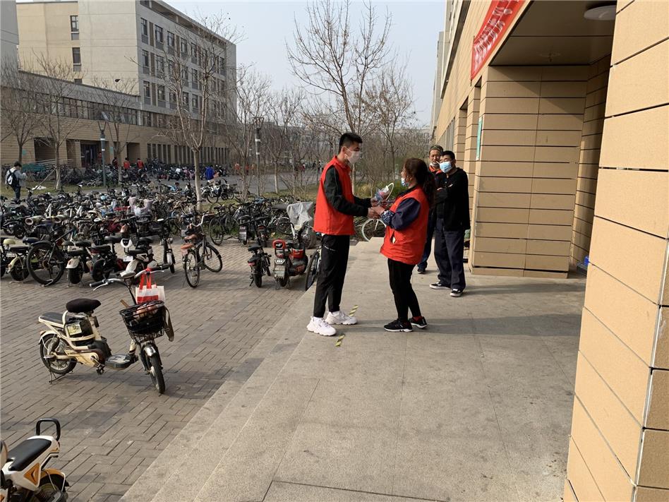 矿业工程学院青年志愿者协会根据疫情防控要求,在菊园生活区开展了“四月感风暖,寸草心更燃”寸草心活动。上午,志愿者到达值班室精心对苹果进行包装,并将对宿管阿姨的美好祝愿融入其中。下午,志愿者帮助宿管阿姨将电动车摆放整齐,并将充满祝福的苹果花束赠予阿姨,并与阿姨合影留念。本次活动给因封校而不能回家的宿管阿姨送去爱心与祝愿,让阿姨感受到温馨的校园生活环境。